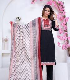 | Product Name | Floral Printed Black Round Neck Pure Cotton Kurta Set With Trouser & Dupatta | |