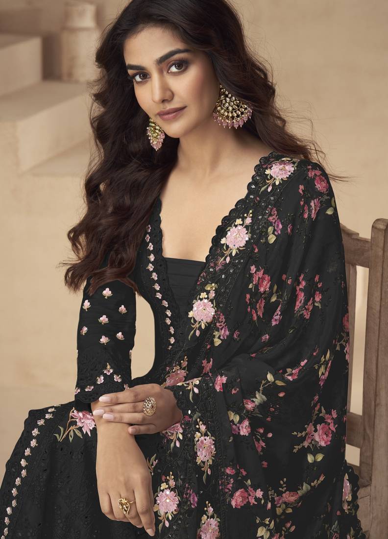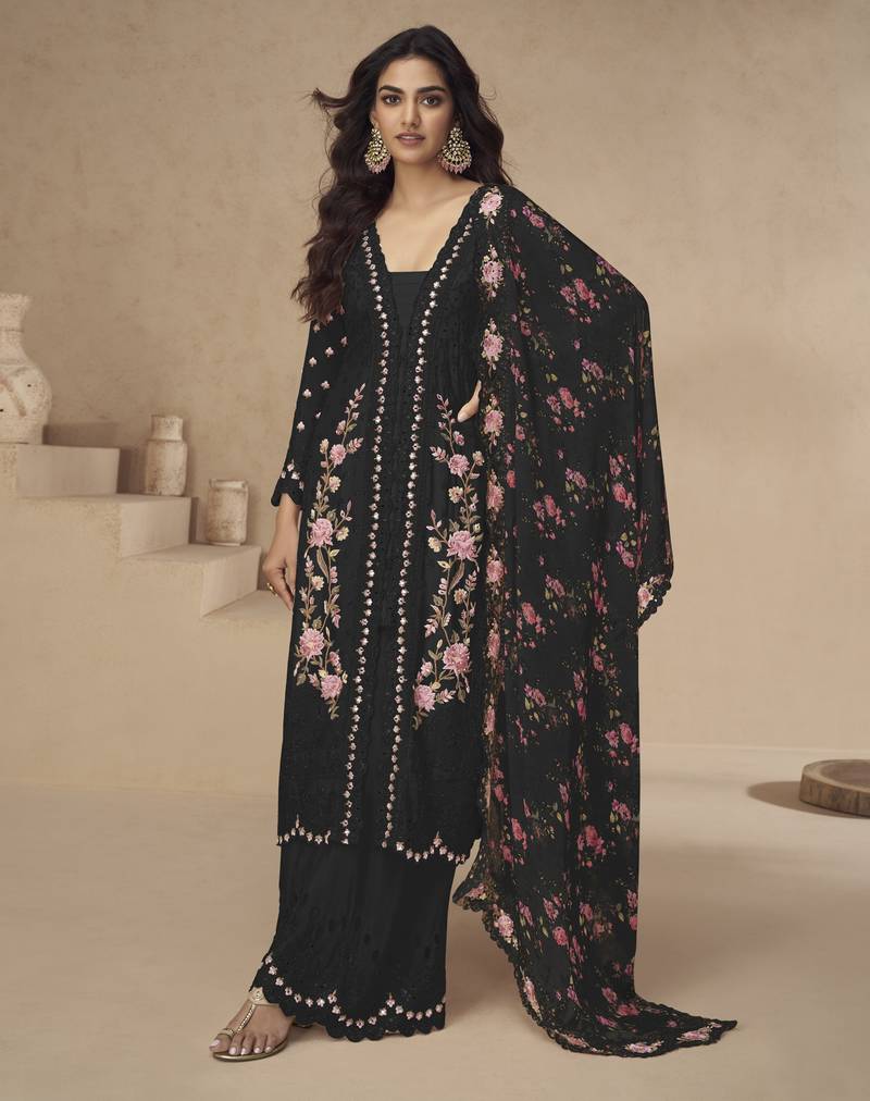 | Product Name | Black Chinon Readymade Suit With Embroidery Sequence Work Full Stitched Free Size | |