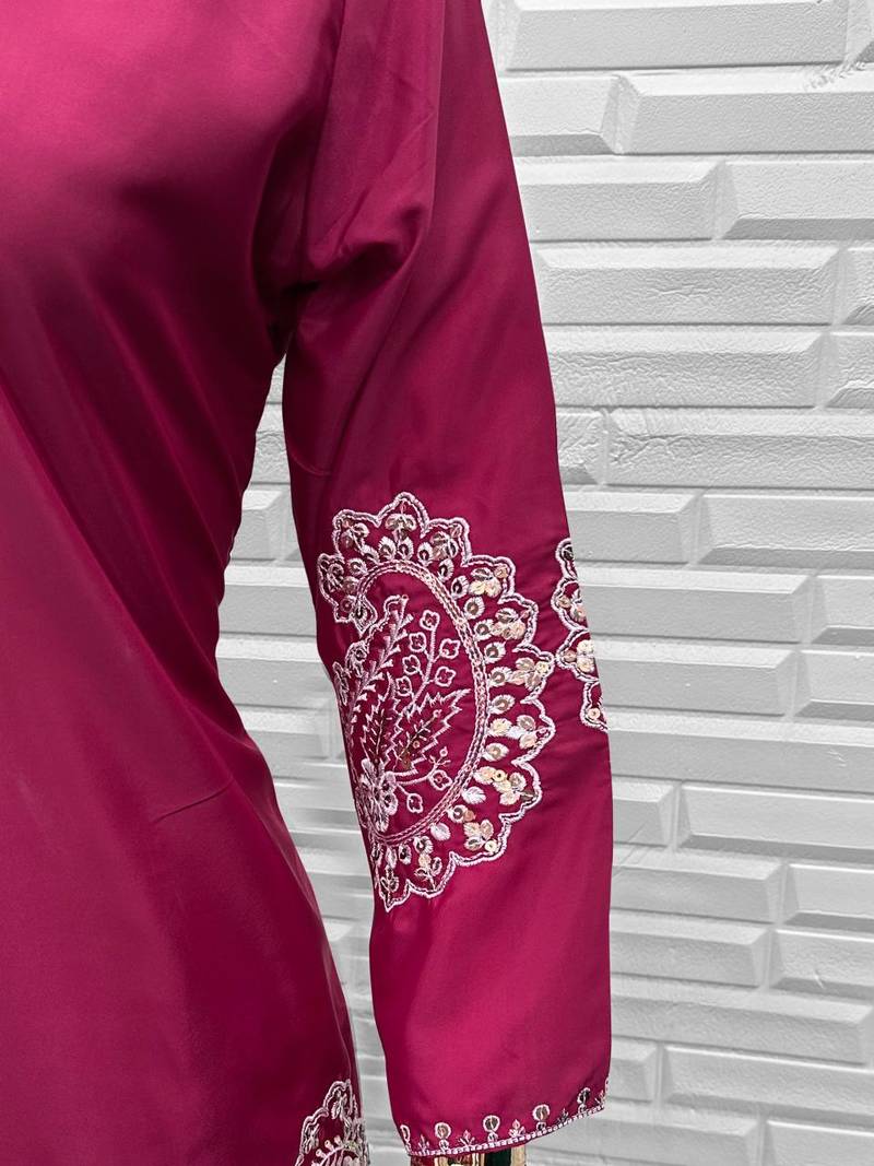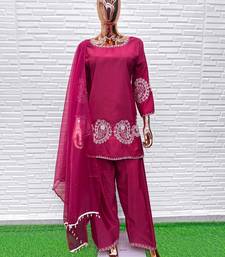 D magenta crape readymade salwar suit with embroidery work stitched