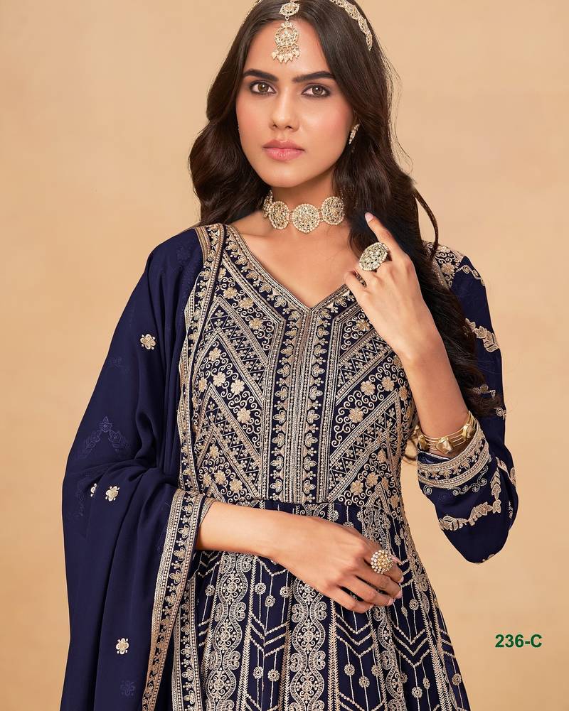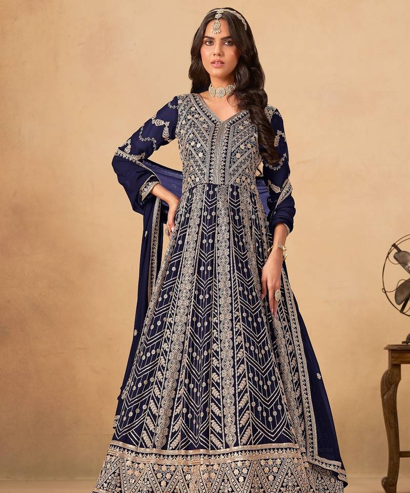 | Product Name | Navy Blue Faux Georgette Semi Stitched Anarkali Suit With Heavy Embroidery Work | |