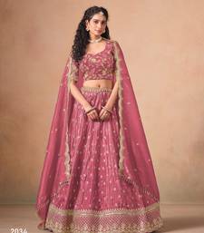 Pink soft organza semi stitched lehenga choli with heavy embroidery work