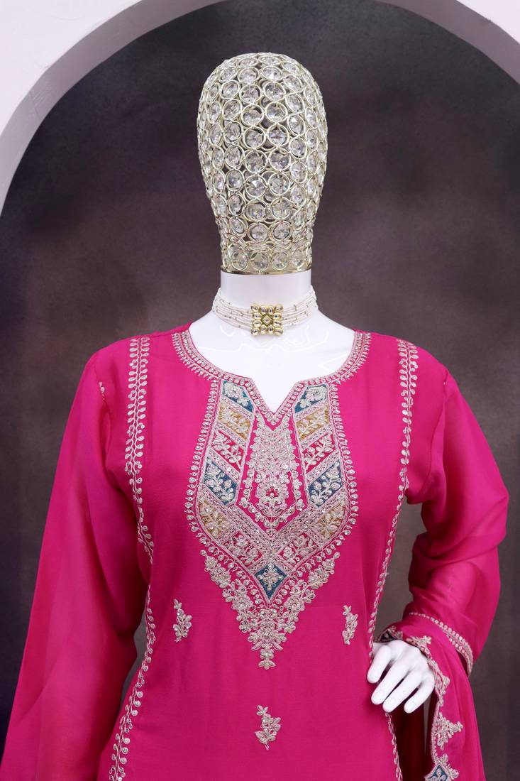 | Product Name | Rani Pink Heavy Chinon Reaymade Suit With Embroidery & Sequence Work | |