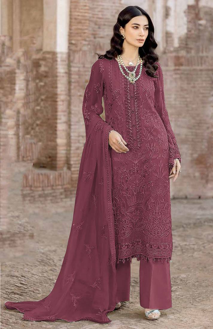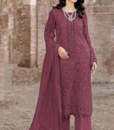 Dark ruby color embroideried faux georgette semi stitched salwar suit