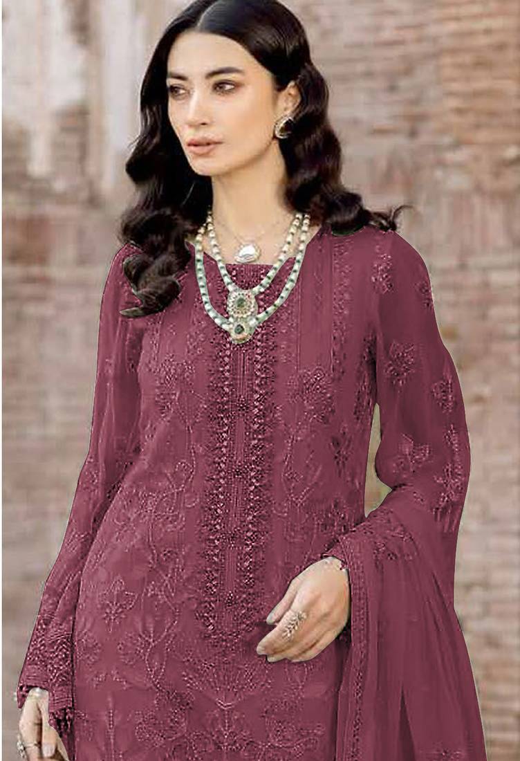 | Product Name | Dark Ruby Color Embroideried Faux Georgette Semi Stitched Salwar Suit | |