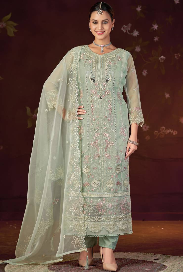 Light pear color embroideried faux georgette semi stitched salwar suit