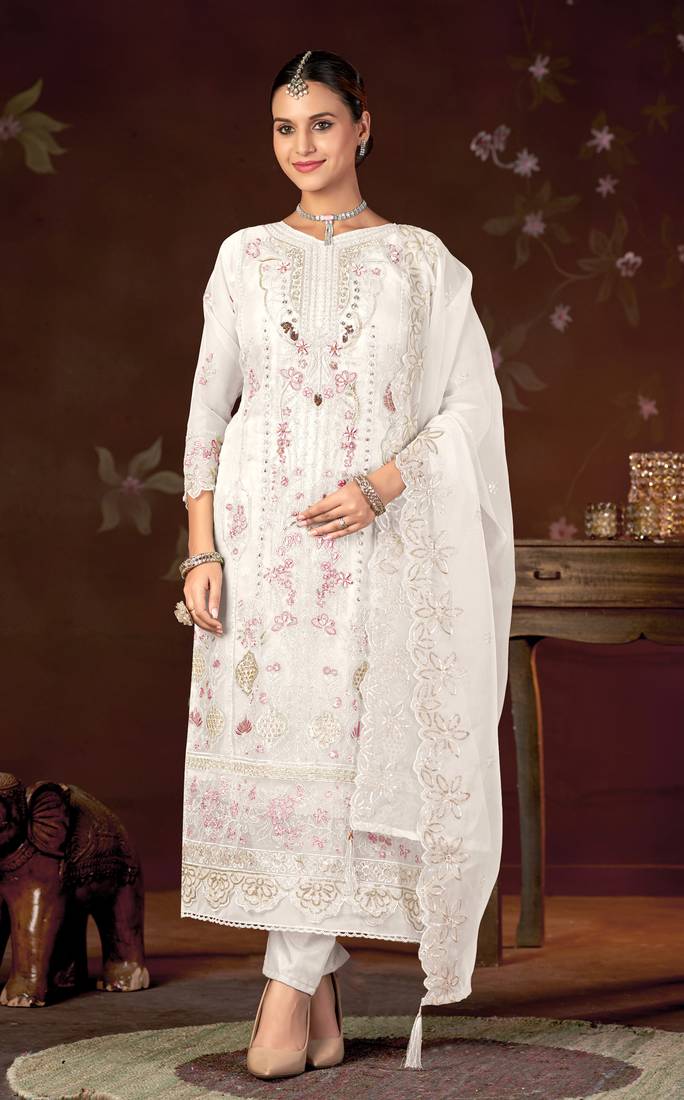 | Product Name | White Color Embroideried Faux Georgette Semi Stitched Salwar Suit | |