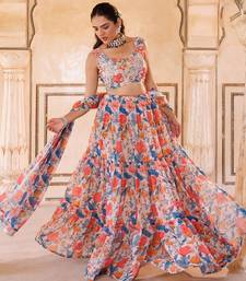 This Multi Colour Printed Georgette Lehenga Set Is A Vibrant Celebration Of Style And Elegance. The Lightweight Georgette Fabric Offers A Graceful, Flowing Silhouette, Enhanced By Lively Prints That Add A Festive Charm. Paired With A Coordinated Blouse And Dupatta, It’s Perfect For Weddings, Sangeet Functions, And Joyful Traditional Occasions.