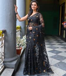 | Product Name | Black Pure Muslin Silk Saree With Self Leaf Woven Motifs And Golden Flower Butis | |