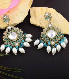 | Product Description | Earring Length: 7.50 Cm X Width: 3.70 Cm | Metal: Alloy With Good Quality Gold Plated | Color: Firozi | Stone: Kundan & Imitation Pearl | Gross Weight: 39.00 Grams | Package Content: 1 Pair Of Earrings | Back Finding: Post With Friction Back X Earring Style: Dangle |