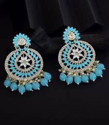| Product Description | Earring Length: 6.50 Cm X Width: 4.00 Cm | Metal: Alloy With Good Quality Gold Plated | Color: Firozi | Stone: Kundan & Imitation Pearl | Gross Weight: 34.00 Grams | Package Content: 1 Pair Of Earrings | Back Finding: Post With Friction Back X Earring Style: Dangle |