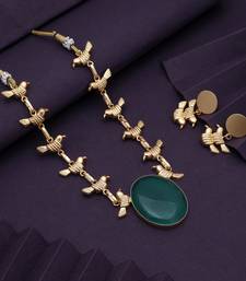 | Product Description | Adjustable Rope | Necklace Length: 24.00 Cm X Width: 2.00 Cm | Pendant Length: 5.20 Cm X Width: 3.20 Cm | Earring Length: 3.50 Cm X Width: 2.00 Cm | Metal: Brass With Good Quality Gold Plated | Color: Green | Stone: Monalisa Stone | Gross Weight: 41.00 Grams | Package Content: 1 Piece Of Necklace/1 Pair Of Earrings | Back Finding: Post With Friction Back X Earring Style: Dangle |