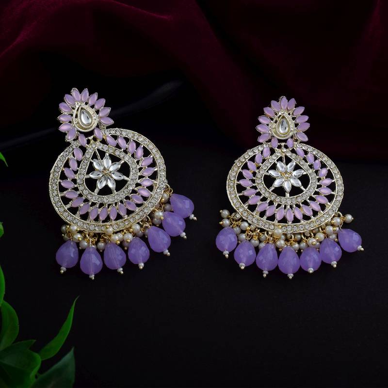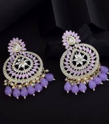 | Product Description | Earring Length: 6.50 Cm X Width: 4.00 Cm | Metal: Alloy With Good Quality Gold Plated | Color: Light Purple | Stone: Kundan & Imitation Pearl | Gross Weight: 34.00 Grams | Package Content: 1 Pair Of Earrings | Back Finding: Post With Friction Back X Earring Style: Dangle |