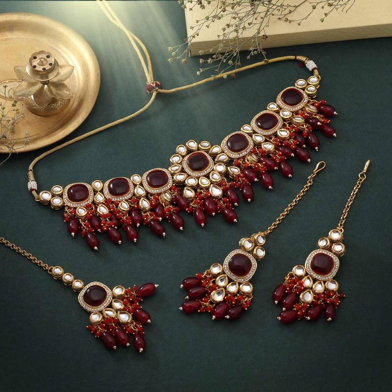 | Product Name | Maroon Color Choker Back Side Meena Work Kundan Necklace Set | |