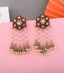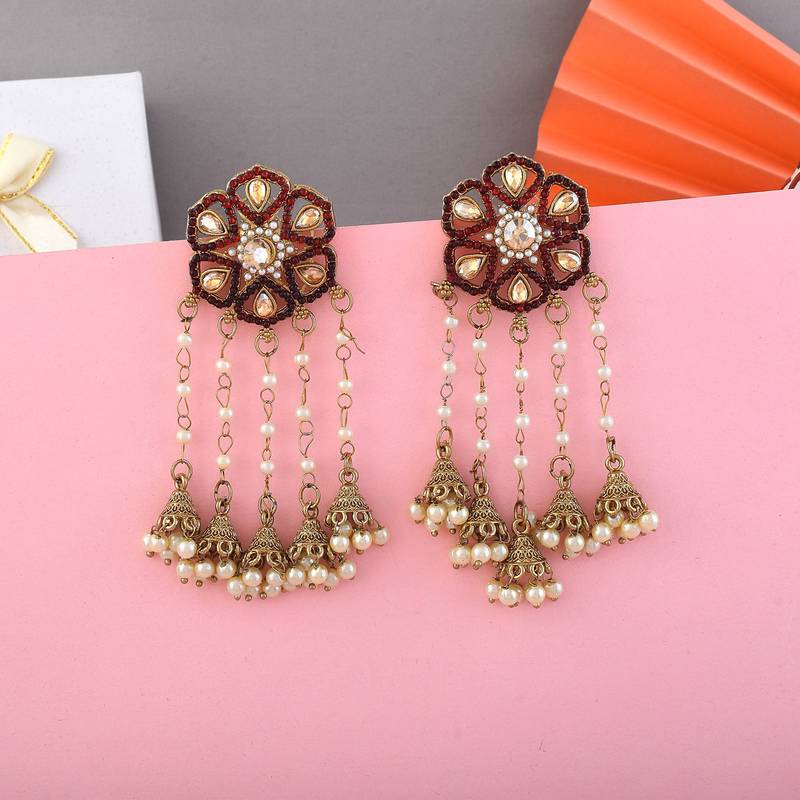 | Product Description | Earring Length: 8.00 Cm X Width: 4.00 Cm | Metal: Alloy With Good Quality Mehndi Gold Plated | Color: Maroon | Stone: Kundan & Beads | Gross Weight: 34.00 Grams | Package Content: 1 Pair Of Earrings | Back Finding: Post With Friction Back X Earring Style: Jhumki |