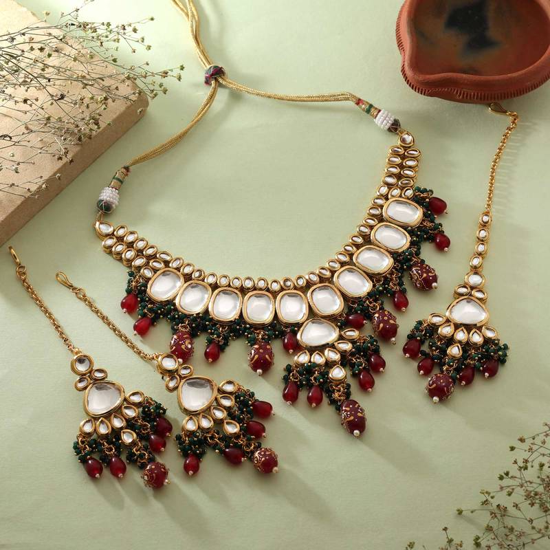 | Product Name | Maroon & Green Color Back Side Meena Work Kundan Necklace Set | |