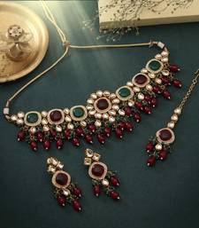 | Product Name | Maroon & Green Color Choker Back Side Meena Work Kundan Necklace Set | |