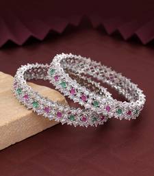 | Product Description | Bangle Size: 2.6 | Metal: Brass With Good Quality Silver Plated | Color: Multi | Stone: American Diamond | Gross Weight: 65.00 Grams | Package Content: 1 Pair Of Bangle Size: 2.6 |