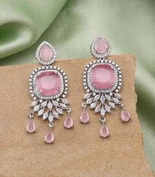 | Product Description | Earring Length: 5.70 Cm X Width: 2.00 Cm | Metal: Brass With Good Quality Silver Plated | Color: Pink | Stone: American Diamond & Monalisa Stone | Gross Weight: 22.00 Grams | Package Content: 1 Pair Of Earrings | Back Finding: Post With Friction Back X Earring Style: Dangle |