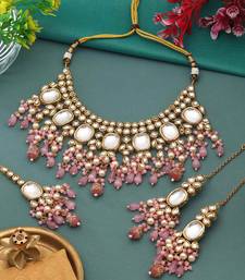 | Product Description | Adjustable Rope | N: 18.00 Cm X Width: 9.00 Cm | Chain Length: 7.50 Cm | Earring Length: 10.00 Cm X Width: 3.00 Cm | Maang Tikka Length: 18.00 Cm X Width: 3.00 Cm | Metal: Brass With Good Quality Gold Plated | Color: Pink | Stone: Kundan & Monalisa Stone | Gross Weight: 315.00 Grams | Package Content: 1 Piece Of Necklace/1 Pair Of Earrings/1 Piece Of Maang Tikka | Back Finding: Post With Friction Back X Earring Style: Dangle |