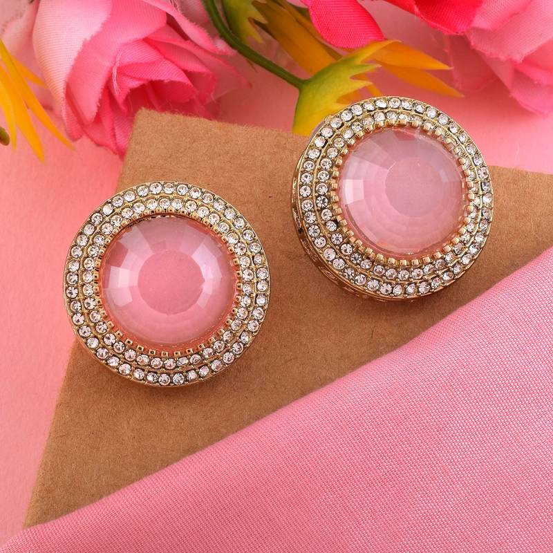 | Product Description | Earring Length: 2.80 Cm X Width: 2.80 Cm | Metal: Alloy With Good Quality Mehndi Gold Plated | Color: Pink | Stone: Kundan | Gross Weight: 20.00 Grams | Package Content: 1 Pair Of Earrings | Back Finding: Post With Friction Back X Earring Style: Stud |