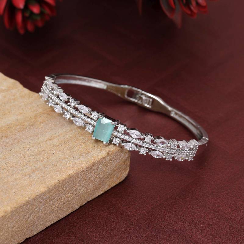 | Product Description | Bracelet Size: 2.6 | Metal: Brass With Good Quality Silver Plated | Color: Pista Green | Stone: American Diamond | Gross Weight: 12.00 Grams | Package Content: 1 Piece Of Bracelet |