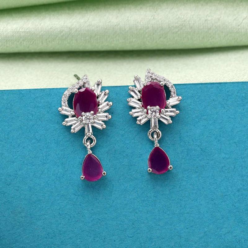 | Product Description | Earring Length: 2.50 Cm X Width: 1.00 Cm | Metal: Brass With Good Quality Silver Plated | Color: Rani | Stone: American Diamond | Gross Weight: 8.00 Grams | Package Content: 1 Pair Of Earrings | Back Finding: Post With Friction Back X Earring Style: Drop |