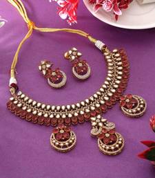 | Product Description | Adjustable Rope | Necklace Length: 18.00 Cm X Width: 8.00 Cm | Earring Length: 4.00 Cm X Width: 2.30 Cm | Metal: Brass With Good Quality Gold Plated | Color: Rani | Stone: American Diamond & Monalisa Stone | Gross Weight: 139.00 Grams | Package Content: 1 Piece Of Necklace/1 Pair Of Earrings | Back Finding: Post With Friction Back X Earring Style: Dangle |
