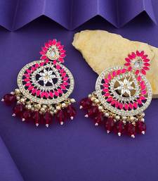 | Product Description | Earring Length: 6.50 Cm X Width: 4.00 Cm | Metal: Alloy With Good Quality Gold Plated | Color: Rani | Stone: Kundan & Imitation Pearl | Gross Weight: 34.00 Grams | Package Content: 1 Pair Of Earrings | Back Finding: Post With Friction Back X Earring Style: Dangle |