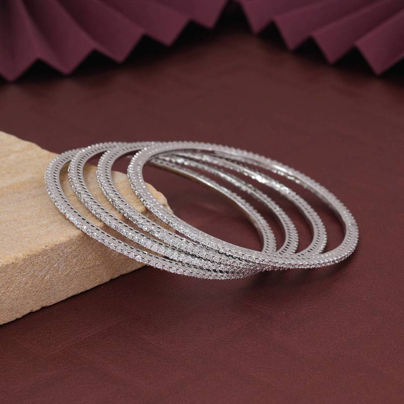 | Product Description | Bangle Size: 2.6 | Metal: Brass With Good Quality Silver Plated | Color: Silver | Stone: American Diamond | Gross Weight: 40.00 Grams | Package Content: 1 Pair Of Bangle Size: 2.6 |