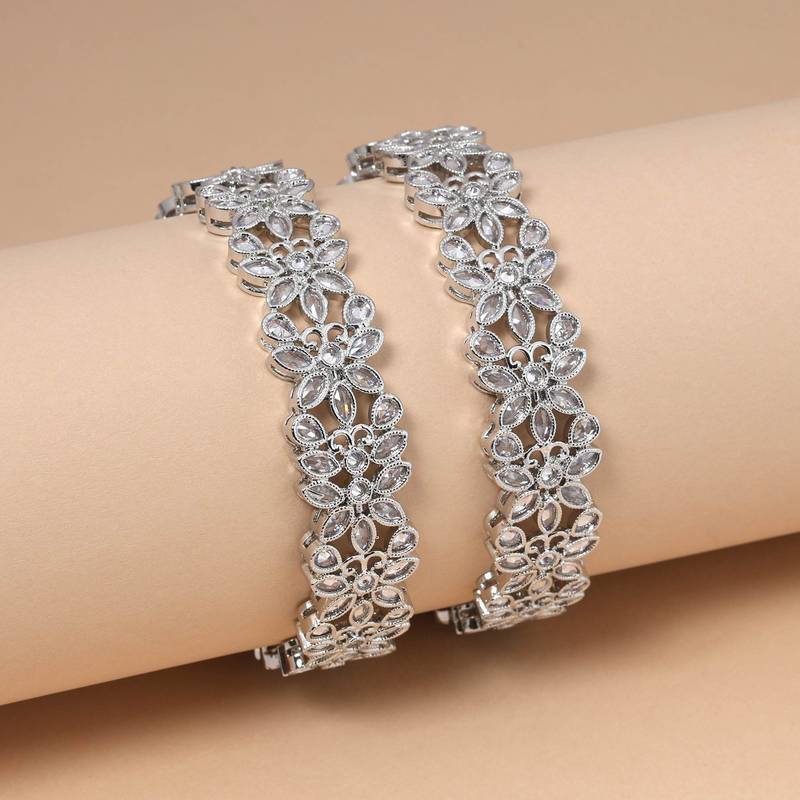 | Product Description | Bangle Size: 2.6 | Metal: Brass With Good Quality Silver Plated | Color: Silver | Stone: American Diamond | Gross Weight: 75.00 Grams | Package Content: 1 Pair Of Bangle Size: 2.6 |