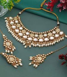 | Product Description | Adjustable Rope | N: 22.00 Cm X Width: 6.50 Cm | Chain Length: 8.00 Cm | Earring Length: 9.00 Cm X Width: 3.70 Cm | Maang Tikka Length: 19.00 Cm X Width: 3.70 Cm | Metal: Brass With Good Quality Gold Plated | Color: White | Stone: Kundan & Imitation Pearl | Gross Weight: 355.00 Grams | Package Content: 1 Piece Of Necklace/1 Pair Of Earrings/1 Piece Of Maang Tikka | Back Finding: Post With Friction Back X Earring Style: Dangle |