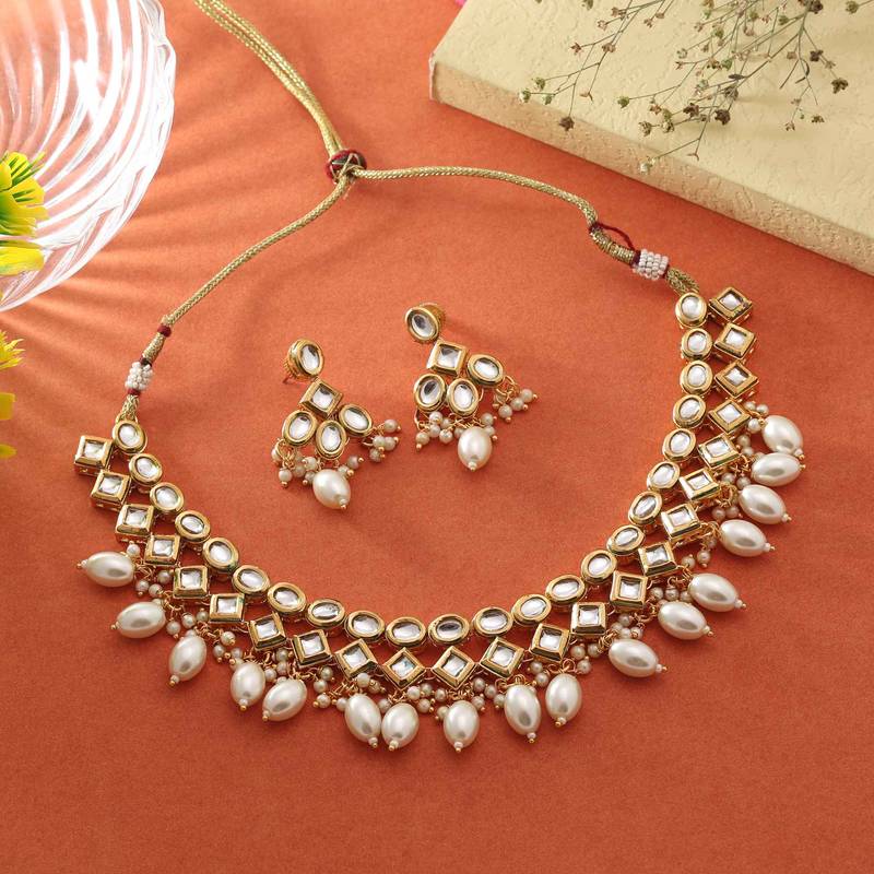 | Product Description | Adjustable Rope | N: 22.00 Cm X Width: 3.00 Cm | Earring Length: 4.50 Cm X Width: 2.20 Cm | Metal: Brass With Good Quality Gold Plated | Color: White | Stone: Kundan & Imitation Pearl | Gross Weight: 105.00 Grams | Package Content: 1 Piece Of Necklace/1 Pair Of Earrings | Back Finding: Post With Friction Back X Earring Style: Dangle |