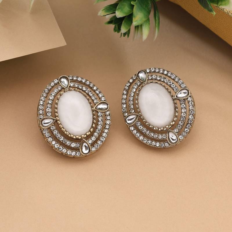 | Product Description | Earring Length: 3.00 Cm X Width: 2.60 Cm | Metal: Alloy With Good Quality Mehndi Gold Plated | Color: White | Stone: Kundan | Gross Weight: 19.00 Grams | Package Content: 1 Pair Of Earrings | Back Finding: Post With Friction Back X Earring Style: Stud |