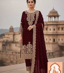 | Product Name | Maroon Velvet Suit Set With Heavy Zari Sequence & Pearl Work | |