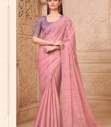 Baby pink crush satin georegtte sequince & reasham work satin silk blend designer blouse party wear saree