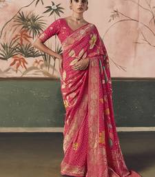 Crimson khadi georgette with designer weaving work & beautiful tassels bandhani saree