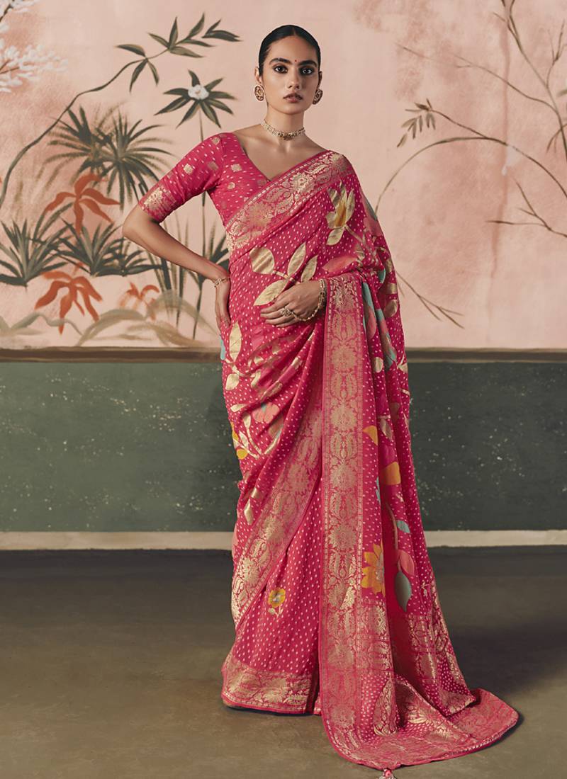 Product Name Crimson Khadi Georgette With Designer Weaving Work & Beautiful Tassels Bandhani Saree