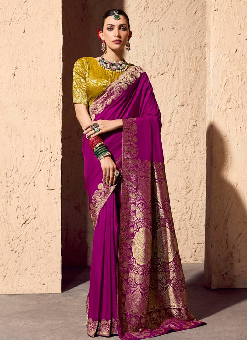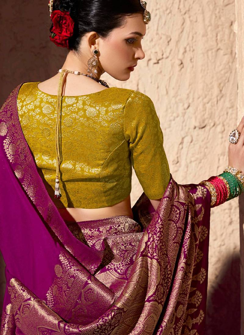 Magenta viscose silk blend with zari weaving & tassel with brocade blouse