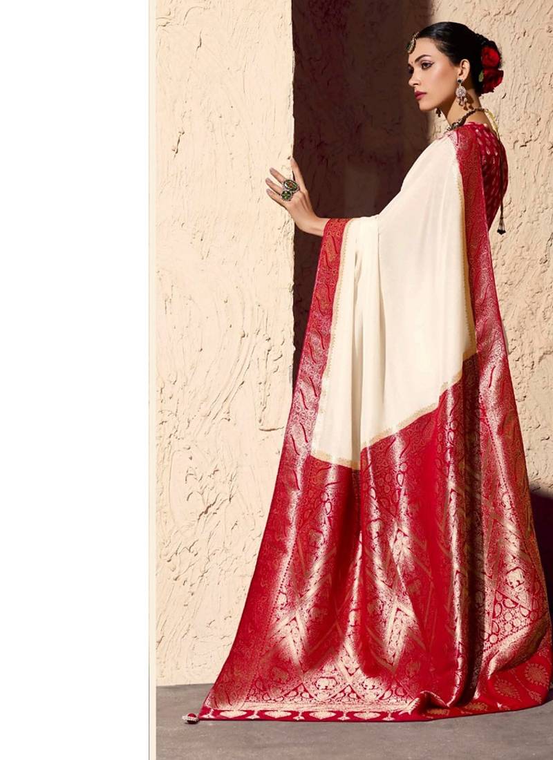 | Product Name | Off White & Red Viscose Silk Blend With Zari Weaving & Tassel With Brocade Blouse | |