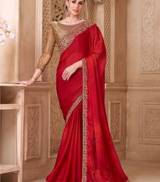Red satin silk blend sequince work brocade designer blouse party wear saree