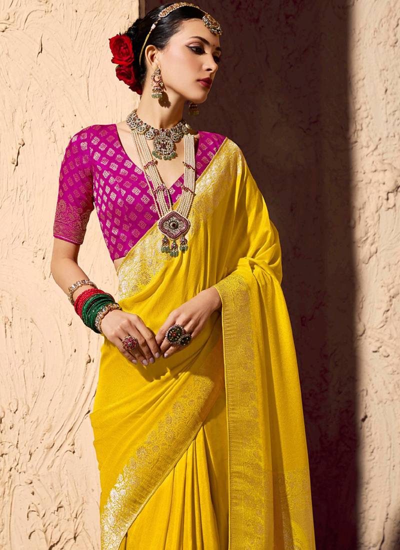 | Product Name | Yellow Viscose Silk Blend With Zari Weaving & Tassel With Brocade Blouse | |