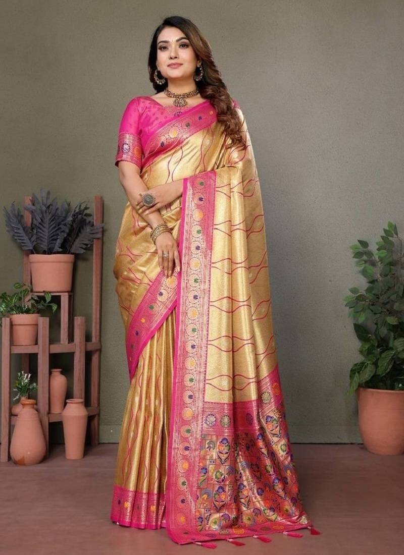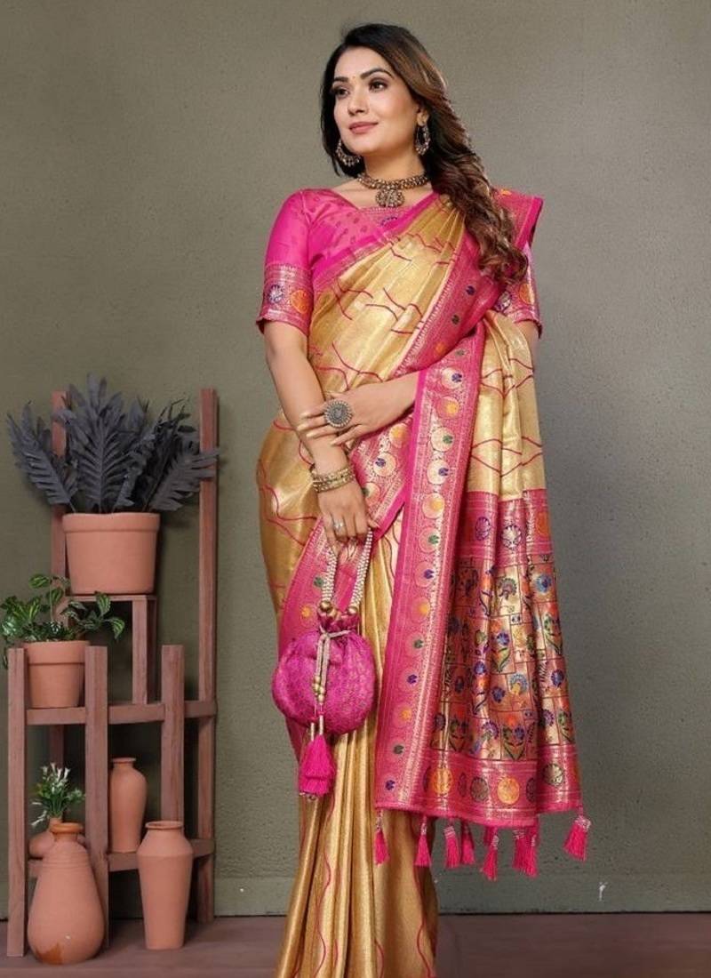 | Product Description | Details: Saree: Premium Banarasi Tissue Silk Sarees With All Over Leheriya Weaving Rich Contrast Laheriya Woven Borders And Contrast Banarasi Woven Classic Pallu Saree Blouse: Premium Banarasi Tissue Silk With Woven Design Saree Length: 5.5 Mtr Blouse Length: 0.80 Mtr |