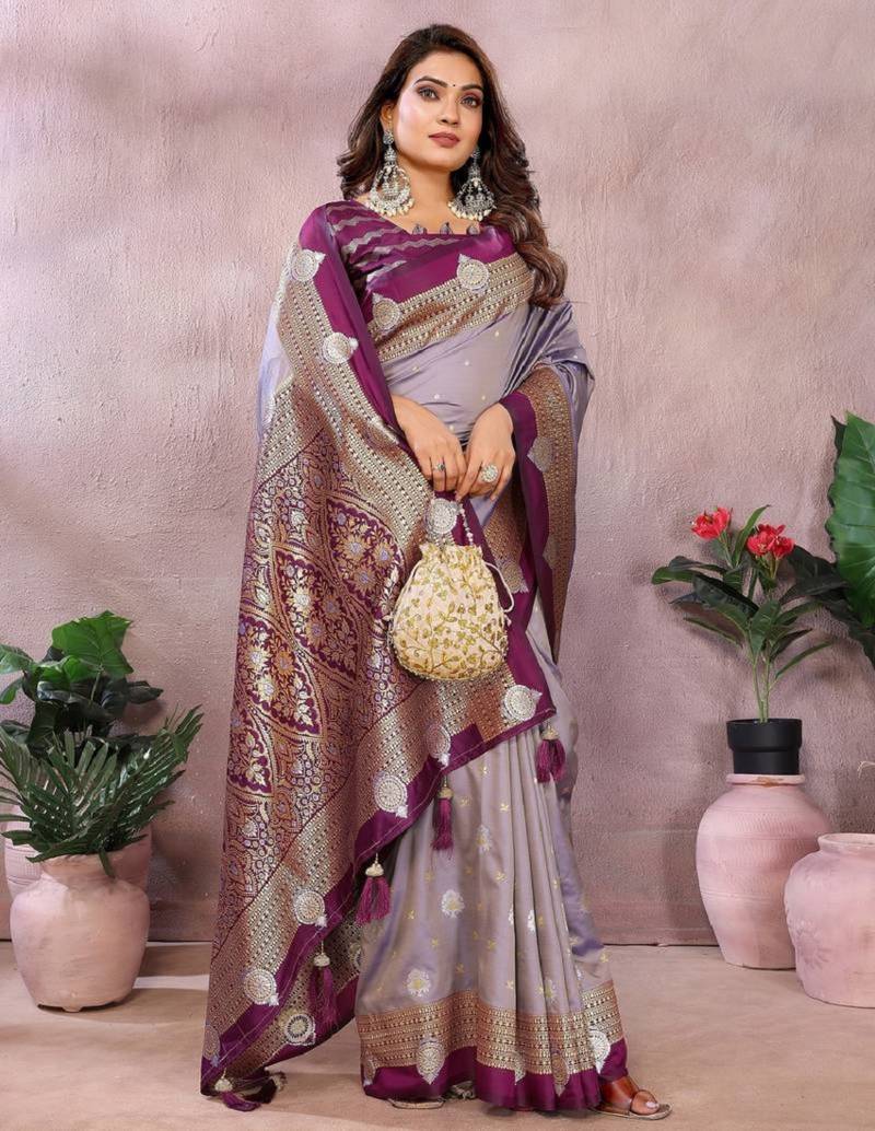 | • | Saree | : | Color- Lavender / Fabric- Silk Blend |