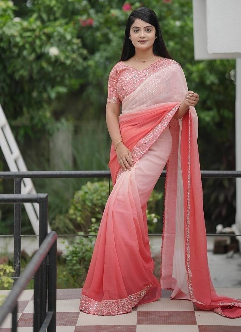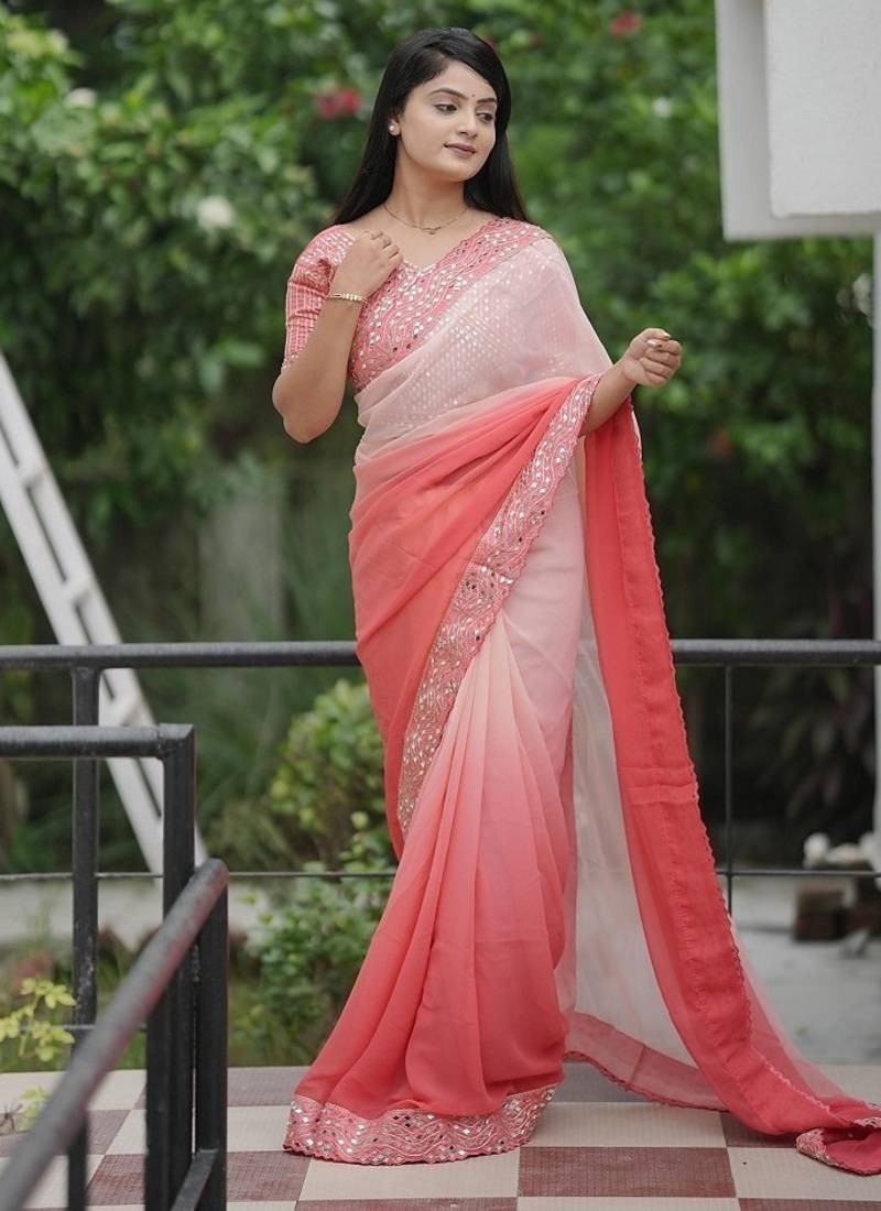| Product Name | Red Faux Georgette With Real Mirror Work Lace Border Saree With Blouse | |