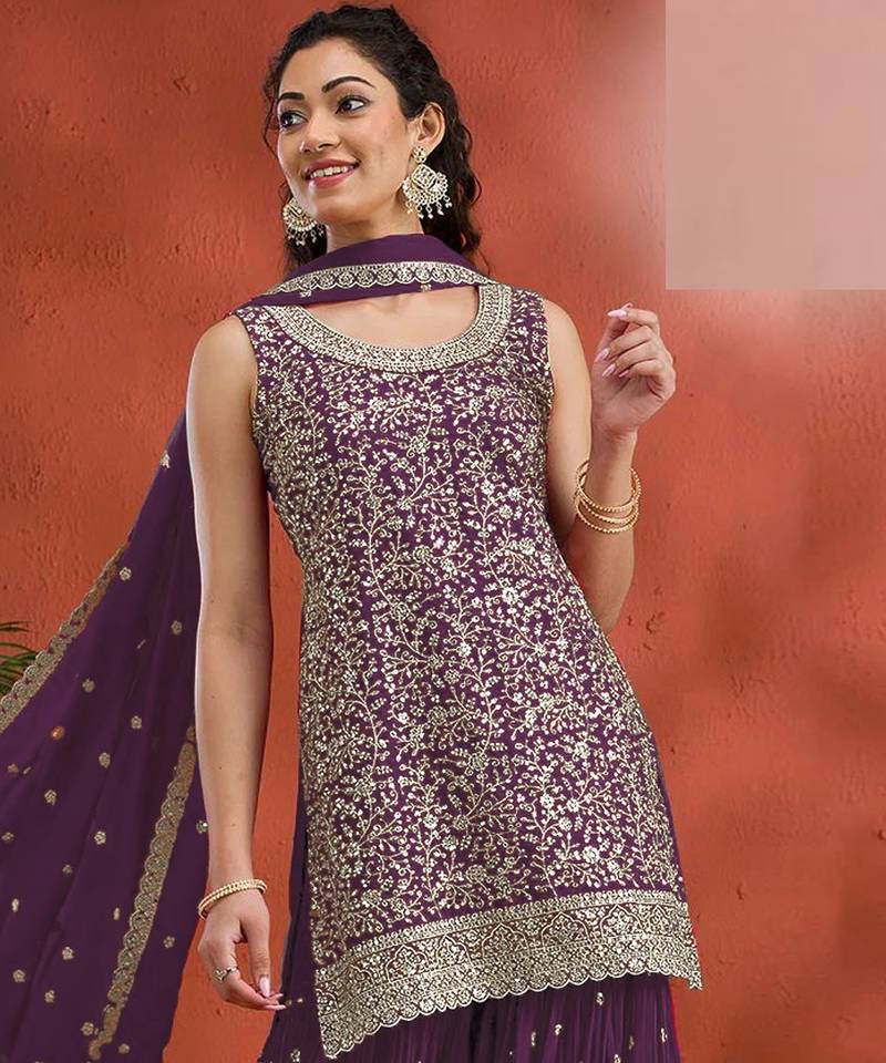 | Product Name | Purple Embroidered Georgette Semi Stitched Palazzo Style Salwar Suit | |