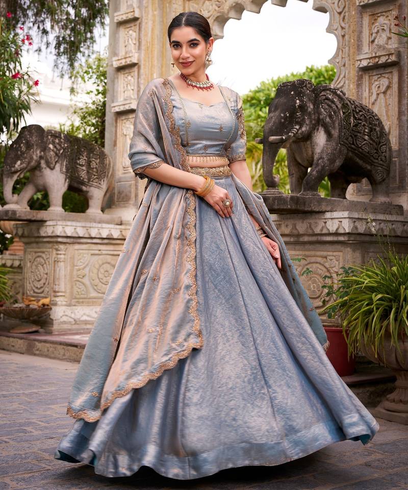 | Product Name | Elegant Sky Blue Fendi Silk Lehenga Choli With Zari And Lace Detailing Dupatta | |