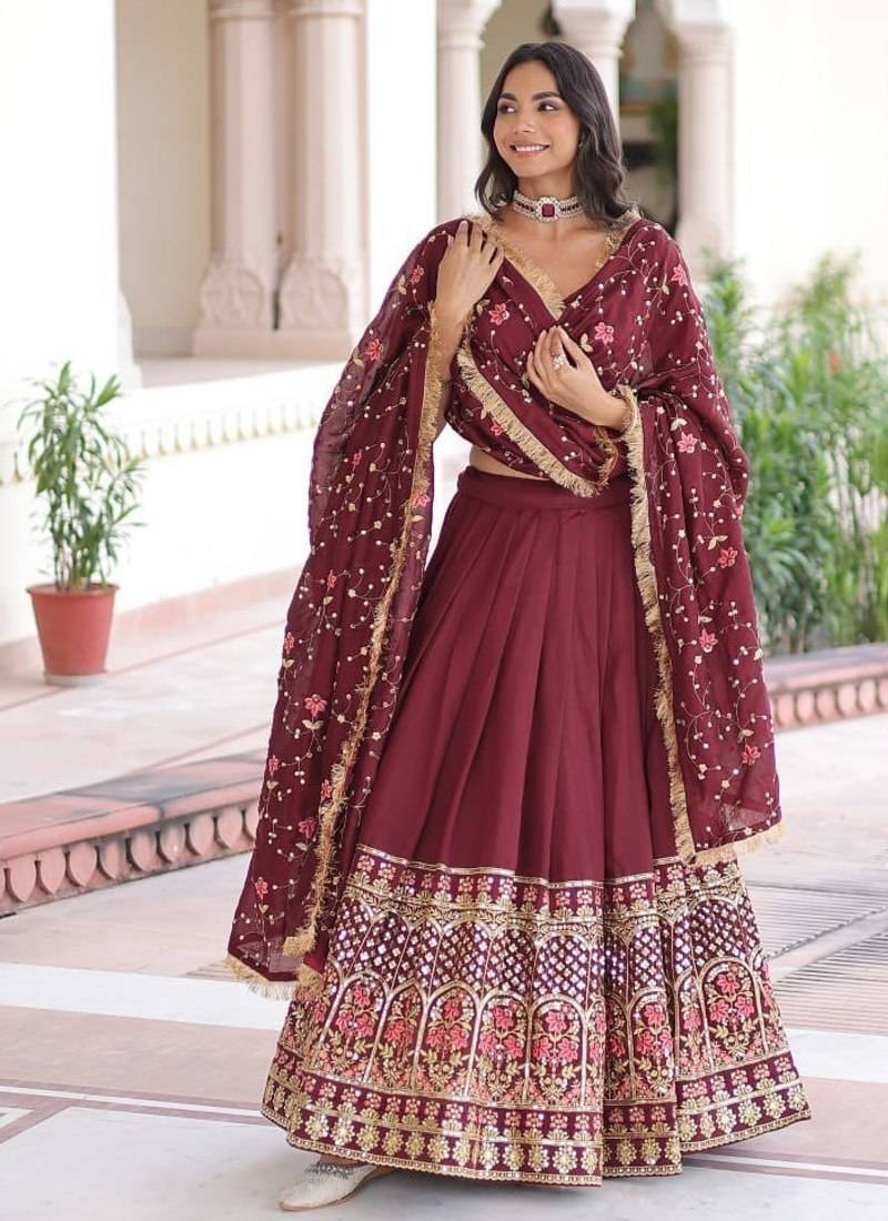 | Product Name | Maroon Embroidered Silk Flared Lehenga With Unstitched Blouse And Dupatta | |