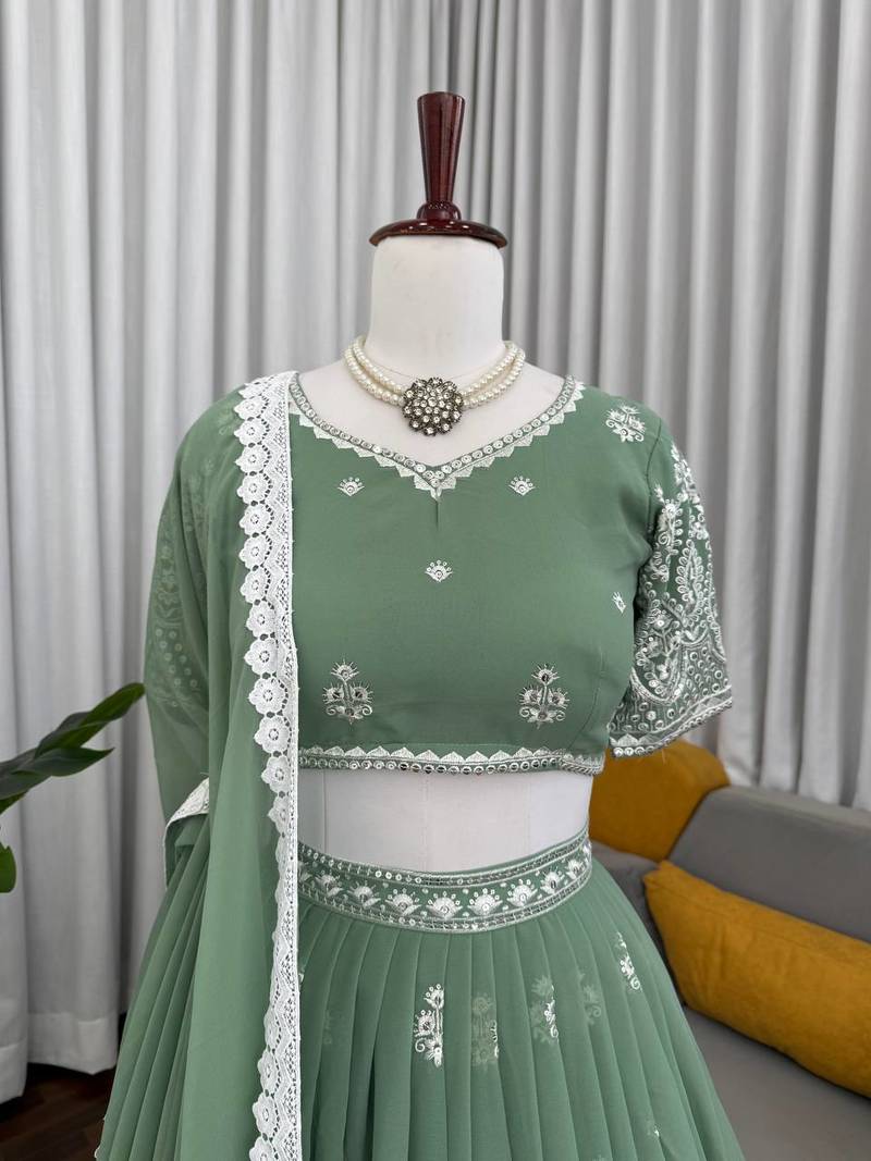 Peastel faux georgette sequins thread work lehenga choli set with dupatta,fully stitched lehenga,unstitched blouse