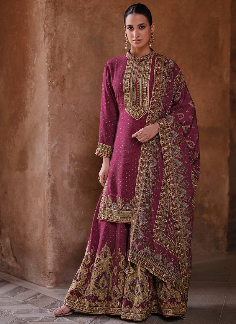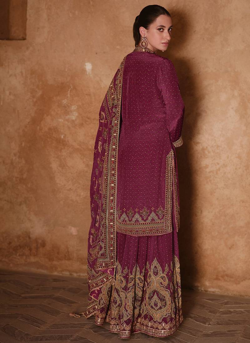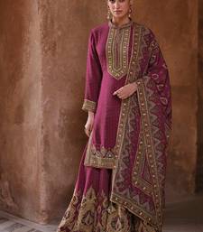 Latest wedding wear russian silk magenta gharara suit for women semi stitched