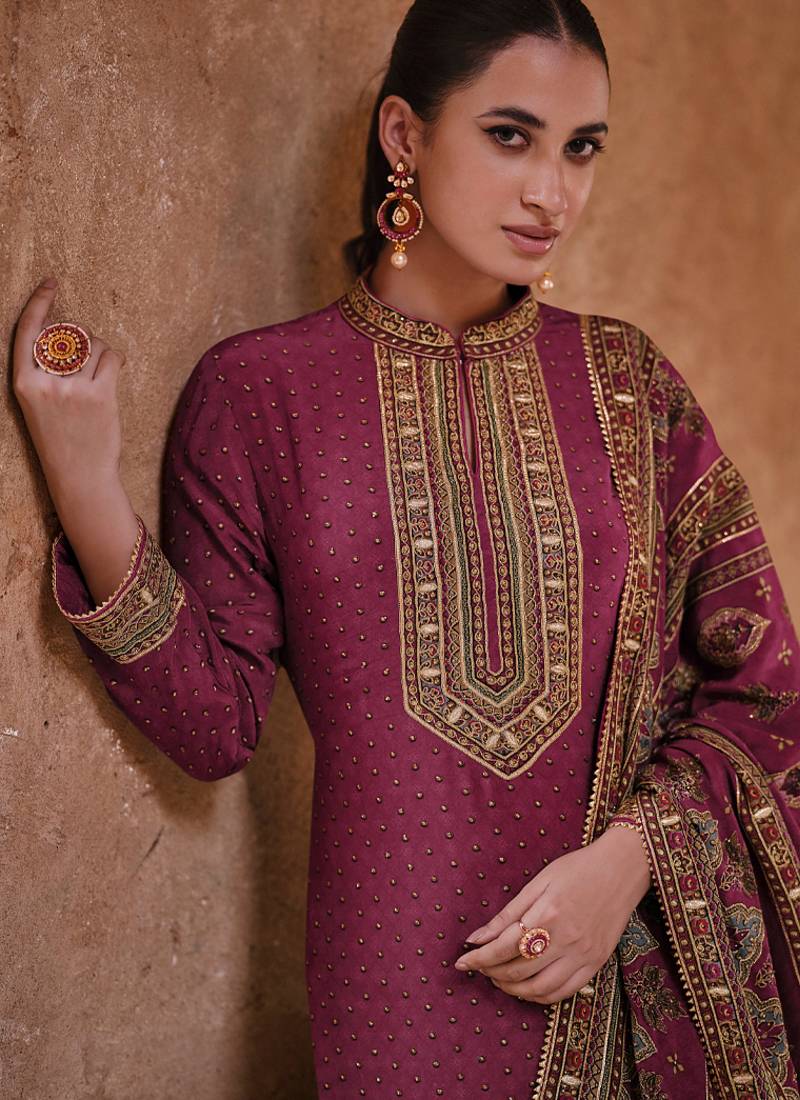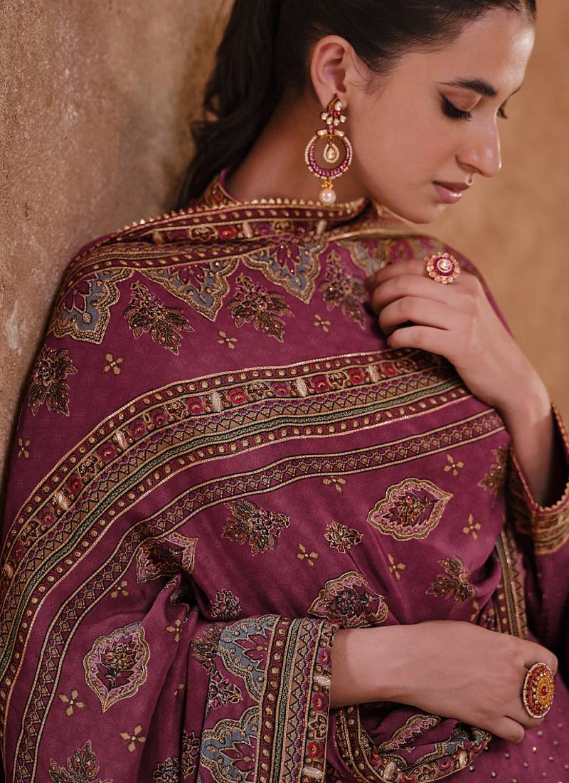 | Product Name | Latest Wedding Wear Russian Silk Magenta Gharara Suit For Women | |